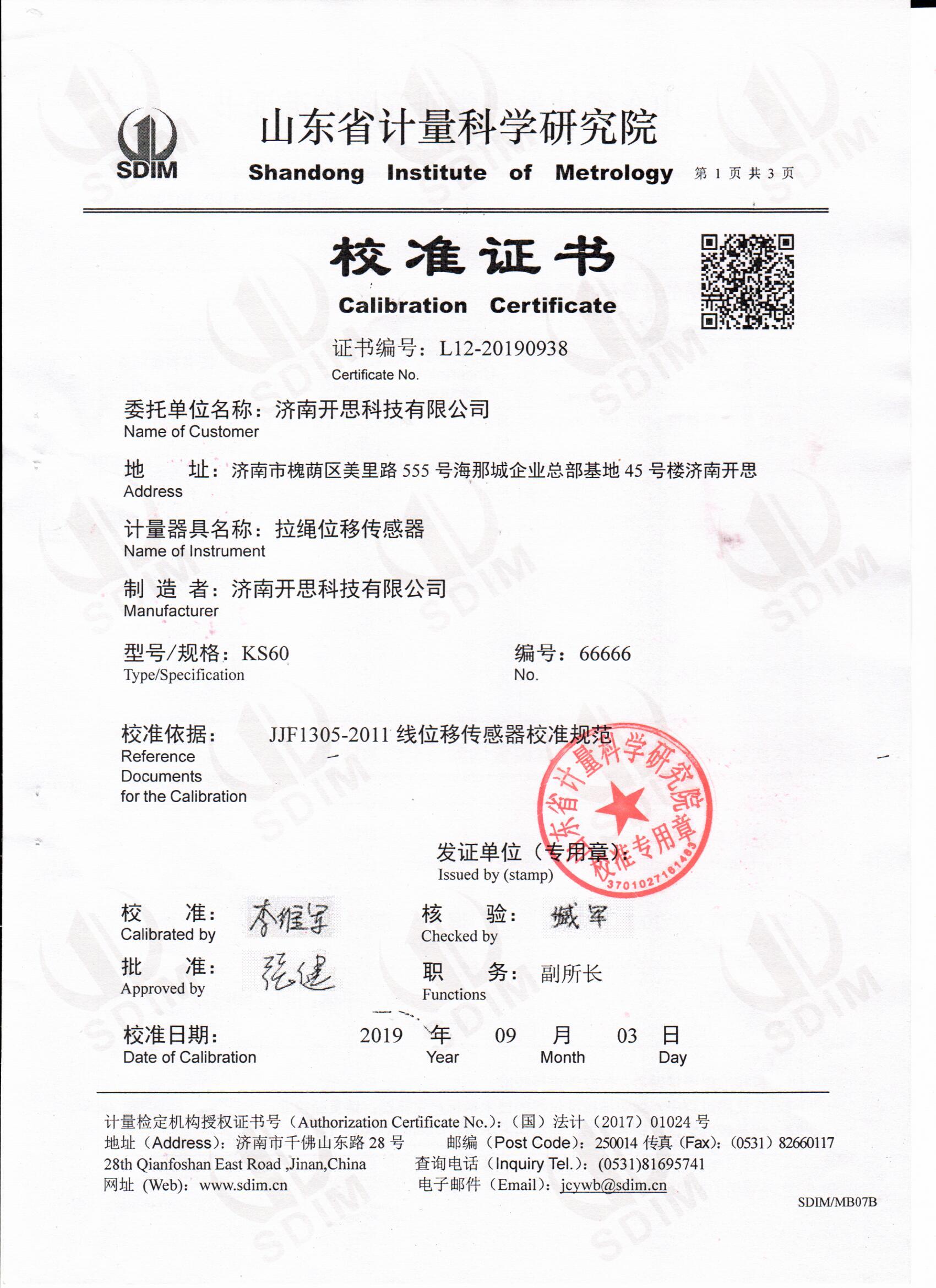 Established in 2008, Ji'nan KAISI Technology Co., Ltd is located in Ji'nan City. KAISI is large manufacturer of draw wire position sensor in China. And the main porudcts include draw wire position sensor, angle position sensor,industrial control instrument and rotary encoder etc.. Our main brand KAISI position sensor has developed eighteen series and hundreds of types. They are widely applied for test flight of aircraft, auto, linear guide rail system, hydraulic cylinder system, telescopic cylinder and other areas. They are used by many large companies and scientific research institutions. Our compnay has complete intellectual property right of products, which provide guarantee for product quality and after-sale service. Now, KAISI products have been successfully exported to over eighty countries and regions over the world. And the quality and service are recognized and affirmed by our customers consistently.